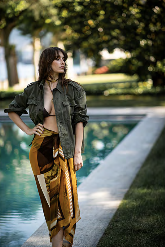 Vert Lago is an accessories collection that combines Art and Textiles. The accessories are made with the silk print of the abstract landscapes of the oil paintings on canvas by the artist Aude Calemard. This makes this collection unique, timeless, and original. Each print bears the name of a town on Lake Como, the artist’s main source of inspiration; the colors of nature always shine through in creations made from silk, cashmere, or natural blends.